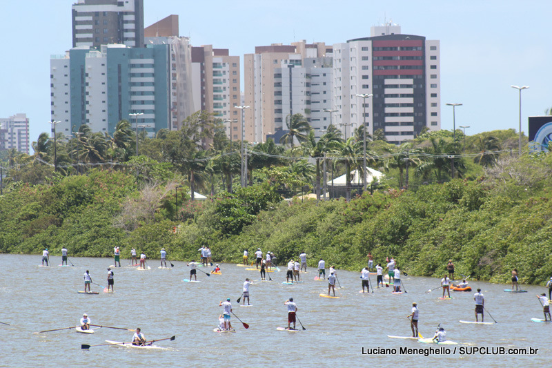 Remadores do SUP, navegam pelo rio Poxim, no município